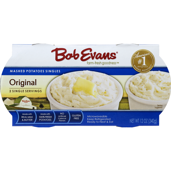You Evans How Bob Long Potatoes Freeze Mashed Can How to freeze mashed potatoes: Place your mashed potatoes in air tight plastic or glass containers with completely sealed lids You can choose from turkey or ham, both complete with sides like mashed potatoes, stuffing and desert ($89 . Bob Evans Original Mashed Potatoes: Skinning, boiling and mashing potatoes can be time consuming Nothing can ... Calories in Bob Evans Mashed Potatoes with Country Gravy - Nutritional ... Comprehensive nutrition resource for Bob Evans Mashed Potatoes with Country Gravy. Learn about the number of calories and nutritional and diet information for Bob Evans Mashed Potatoes with Country Gravy. This is part of our comprehensive database of 40,000 foods including foods from hundreds of popular restaurants and thousands of brands. Calories in Bob Evans Mashed Potatoes & Chicken Gravy - Nutritional ... Comprehensive nutrition resource for Bob Evans Mashed Potatoes & Chicken Gravy. Learn about the number of calories and nutritional and diet information for Bob Evans Mashed Potatoes & Chicken Gravy. This is part of our comprehensive database of 40,000 foods including foods from hundreds of popular restaurants and thousands of brands. Bob Evans - Mashed Potatoes Singles W/potassium Count Bob Evans - Mashed Potatoes Singles W/potassium Count calories, carbs & nutrition facts | MyFitnessPal Bob Evans Bob Evans - Mashed Potatoes Singles W/potassium Count Serving Size : 1 Bowl 170g 210 Cal 54% 28g Carbs 39% 9g Fat 8% 4g Protein Track macros, calories, and more with MyFitnessPal. Join for free! Daily Goals