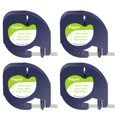 4 PK for DYMO Letratag Refills Label Tape 91330 12mm Black on White QX50 Printer | eBay