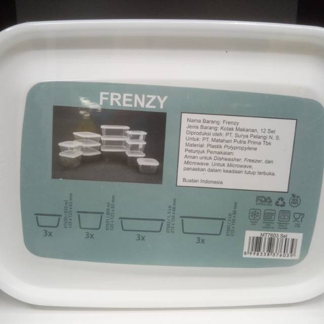 Tepak Makanan Bening/Tempat Penyimpanan Makanan 1 Set Isi 12pcs FRENZY FOOD CONTAINER 12 SET ORIGINA