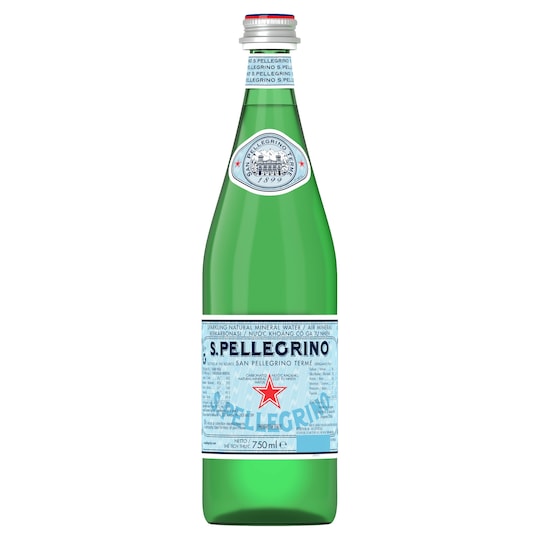Sanpellegrino Sparkling Natural Mineral Water 750ml X12 Pack During this journey the water flows slowly through the different rock formations collecting minerals such as calcium, magnesium and potassium as it goes that create the unmistakable taste of S.PELLEGRINO Sparkling Natural Mineral Water. Bottled in Italy. Ingredients Carbonated Mineral Water Nutrition Information Servings Per Package: 12