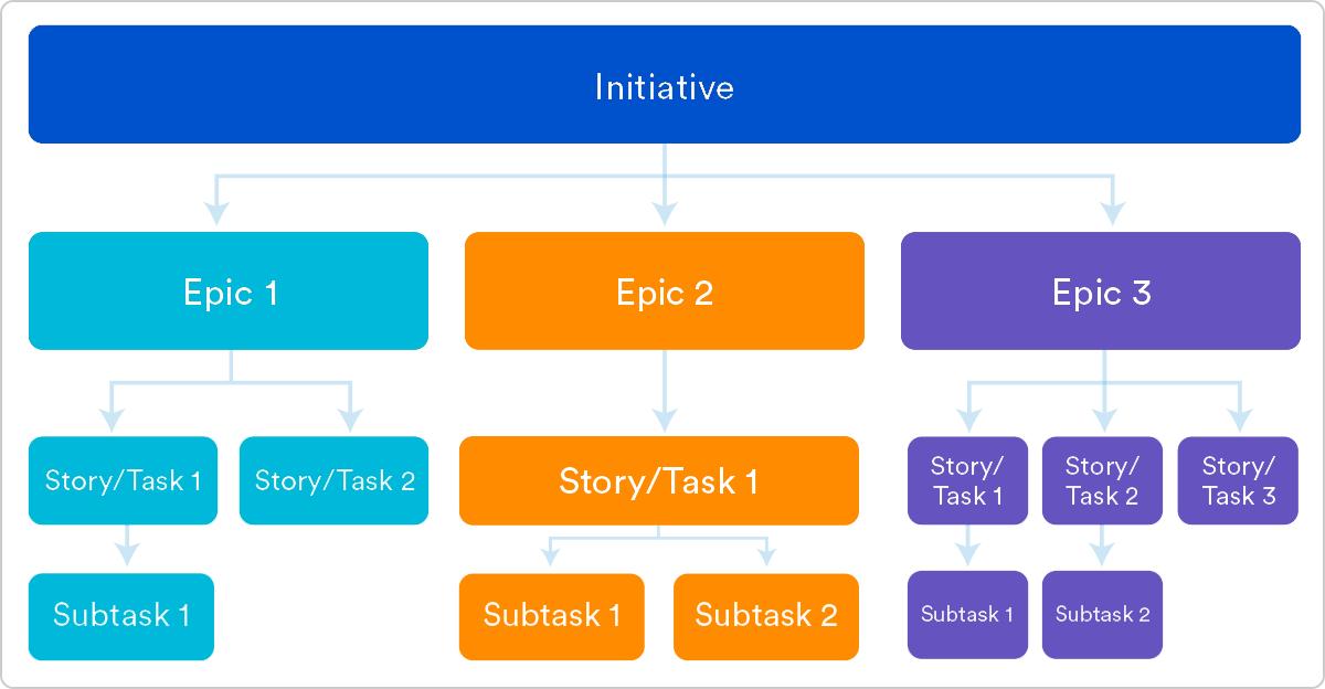 Epics, Stories, Themes, and Initiatives | Atlassian The stories tell the arc of the work completed while the epic shares a high-level view of the unifying objective. On an agile team, stories are something the team can commit to finish within a one- or two-week sprint. Oftentimes, developers would work on dozens of stories a month. Epics, in contrast, are few in number and take longer to complete.