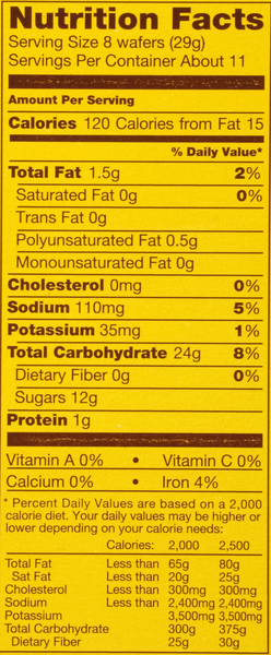 Nabisco nilla wafer cookies reduced fat1x11 oz - 29g Ingredients, allergens, additives, nutrition facts, labels, origin of ingredients and information on product Nabisco nilla wafer cookies reduced fat1x11 oz - 29g