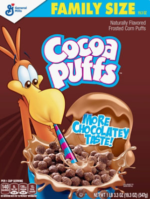 Cocoa Puffs Cereal - Walmart.com Refer to the product label for full dietary information, which may be available as an alternative product image. 1 cup (36g) Serving Size Amount per serving Calories 140 * The % Daily Value (DV) tells you how much a nutrient in a serving of food contributes to a daily diet. Calories per gram: Fat 9 • Carbohydrate 4 • Protein 4 Product details Cocoa Puffs Cereal Allergy and Ingredient Information Signup to Read the Label It looks like Cocoa Puffs Cereal is Free From a total of: 6 different TOP 14 Allergens Nutrition Label Nutrition Facts Amount Per Serving % Daily Value* *Percentage Daily Values are based on a 2,000 calorie diet. Your daily values may be higher or lower depending on your calorie needs. Nutrition Label ingredients: general mills cocoa puffs (sugar, whole grains (corn, oats, and rice) and corn flour, modified corn starch, cocoa, canola and/or rice bran oil, corn syrup, cocoa processed with alkali, salt, calcium carbonate, caramel and beet juice concentrate color, tricalcium phosphate, trisodium phosphate, zinc and iron, artificial flavor, …
