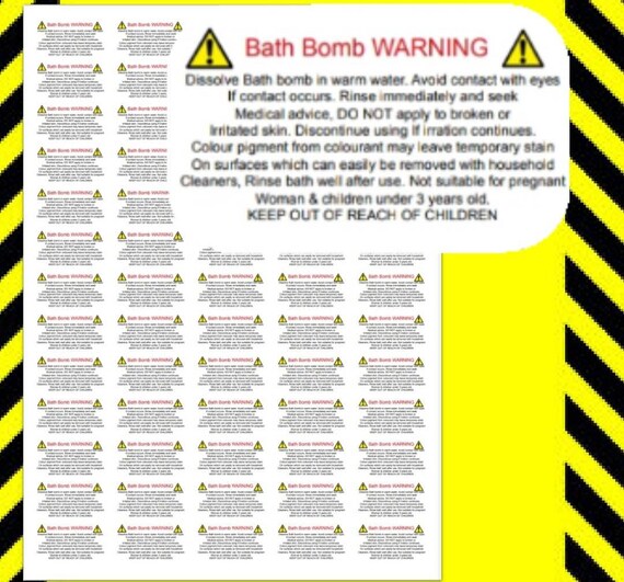 Bath bomb warning label. Summary of Cosmetics Labeling Requirements | FDA Some cosmetics must bear label warnings or cautions prescribed by regulation (21 CFR 740). Cosmetics in self-pressurized containers (aerosol products), feminine deodorant sprays, and children's... How to Label Bath Bombs the Proper Way? | DIY products 101 A simple and very common method is to wrap the bath bombs in multiple layers of shrink wrap of plastic wrap. Add the sticker directly onto this covering. You can then store multiple such bath bombs in a single gift box. As for the label itself, you can either make them yourself or hire a professional designer to make them for you. Safety Warning - Natural Essences - Homemade Bath Bombs & Molds ... Safety Warning NATURAL ESSENCES BATH BOMBS Products may include some of these ingredients. INGREDIENTS: Sodium Bicarbonate (Known As Baking Soda) Citric Acid Epsom Salt Corn Starch or Kaolin Clay Skin Safe Colouring Mica powder SLSA Fragrance Oils & Natural Oils Witch Hazel Polysorbate-80 Hemp Seed Oil Supplier | Bulk Apothecary Posted by Karine Young, Devian's Bath & Body on 1st Jul 2019 I tried the Hemp oil out on myself first before I offered it to my customers. It reduces bloating and constipation, shoulder pain and more. I am very pleased with the product and so are my customers. Thank you Bulk. 5 Loving this oil
