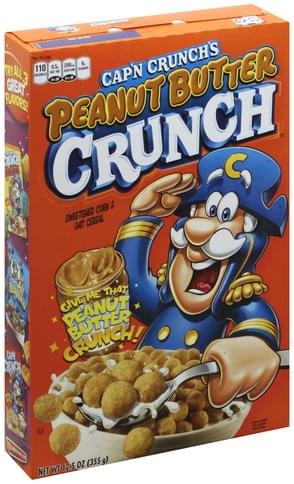 Amazon.com: Cap'N Crunch Breakfast Cereal, Peanut Butter ... Includes 1 (11.4oz) box of Cap'N Crunch, Peanut Butter Crunch flavor ; Peanut butter lovers, we’ve got the crunch for you! Loaded with rich and creamy peanut butter flavor and your favorite unmistakable crunch. Grab a bowl or cup for an easy snack that goes great with couch time, anytime. Crunchatize Me Cap'n!