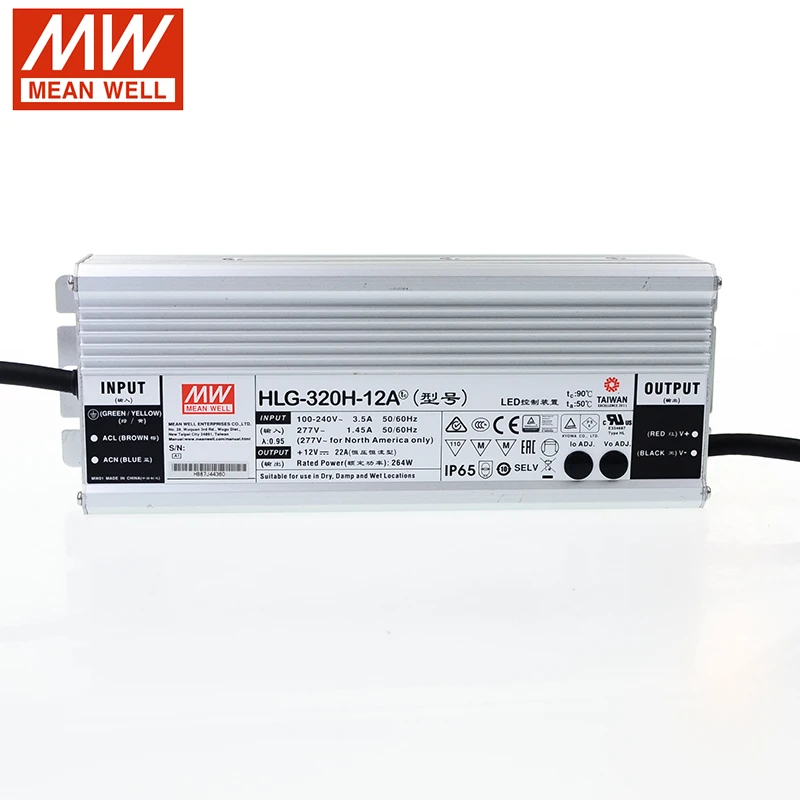 Mean Well Peredupan Power Supply HLG-185H-12B 12V Dimmable LED Driver 110 V/220 V AC Ke 12V DC 13A 156W Tahan Air IP67 Transformer