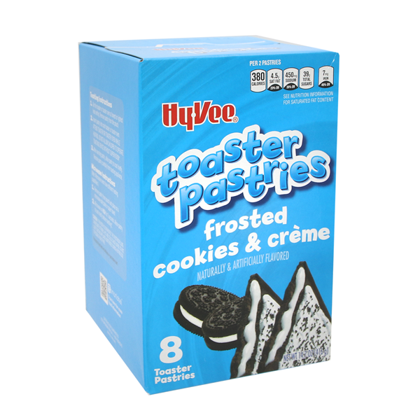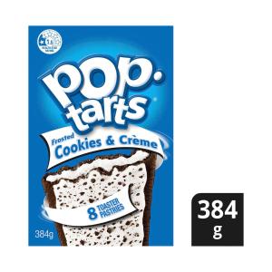 Pop-Tarts Toaster Pastries, Cookies and Creme, 16 Ct, 27 Oz, Box ... Pop-Tarts Frosted Cookies and Crème toaster pastries are a delicious treat to look forward to any time of day. Includes one, 27-ounce box of Cookies and Crème Pop-Tarts. Jump-start your day with smooth, vanilla crème-flavored filling encased in a crumbly chocolatey cookie-flavored crust topped with sweet frosting and a dusting of chocolate ...