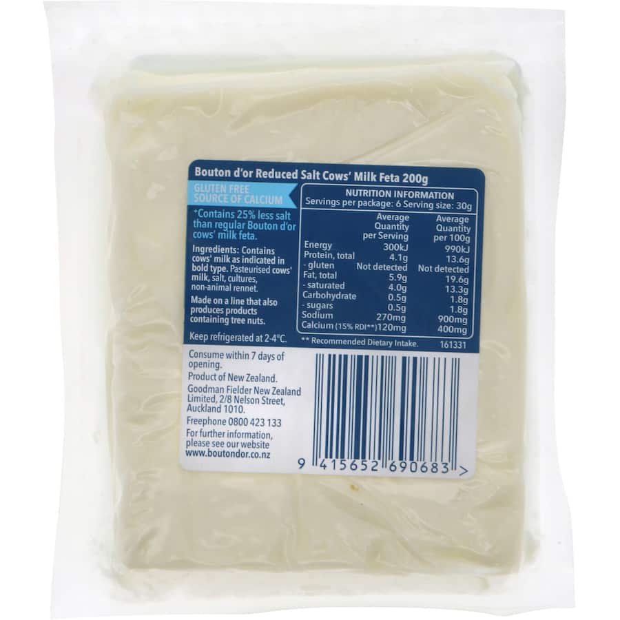 38 feta nutrition label