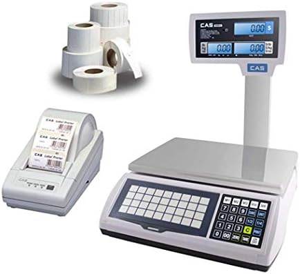 TECHTONGDA Price Computing Scale Commercial Digital Counting Scales 33lb Capacity with Pole Display and Label Printer for Supermarket Trade 110V