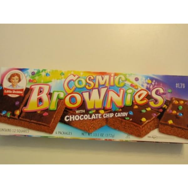 Little Debbie Big Pack Cosmic Brownies with Chocolate Chip Candy - 12 ... Refer to the product label for full dietary information, which may be available as an alternative product image. 12 Servings Per Container ... Covered in delicious fudge icing, chewy Little Debbie® Cosmic Brownies feature a sprinkling of rainbow-colored, candy-coated chocolate chips for a surprise crunch and an all-out chocolate experience ...
