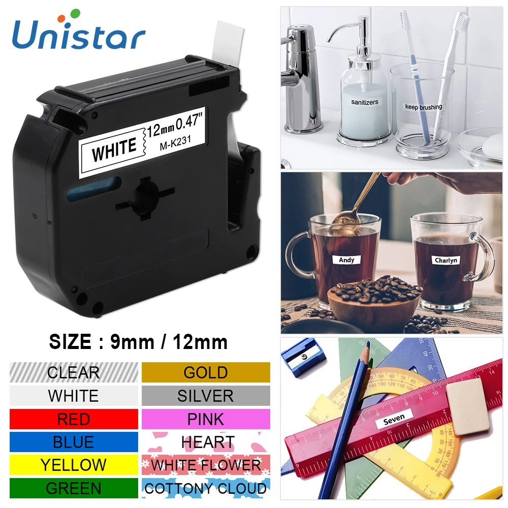 Absonic 9Mm M-K121 MK121 MK 121 MK-121 Jelas P-touch Label Tape Kompatibel untuk Saudara PT-90 PT-80 PT-65 PT-45 PT-M95 LabelMaker