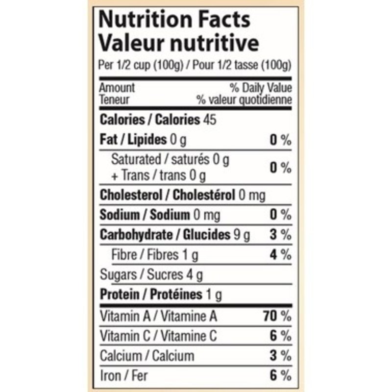 Pumpkin puree nutrition label