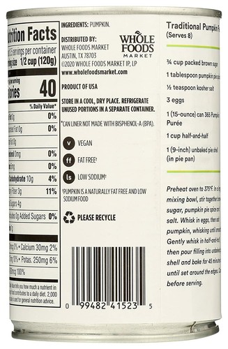 38 pumpkin puree nutrition label