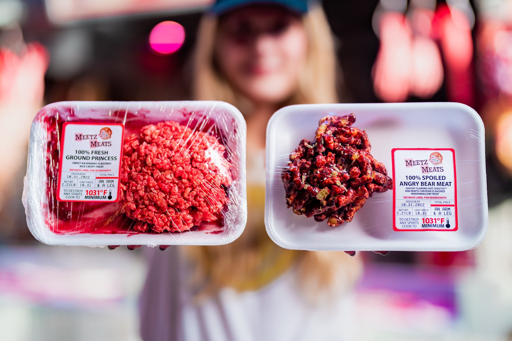 Fresh Meat Red Velvet Rice Krispy Treats (Video Update) "Fresh Raw Meat" Red Velvet Rice Krispy Treats Watch on Perfect for a Cannibal Cookout - Fresh Meat Red Velvet Rice Krispy Treats! Using inexpensive ingredients and taking only minutes to put together, these Fresh Meat Red Velvet Rice Krispy Treats have become one of the most popular recipes on The Homicidal Homemaker® website!