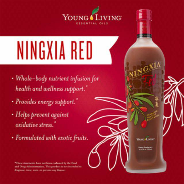 What are the health benefits of ningxia red? – Chicago Tribune May 26, 2021 · Ningxia red is high in fiber and protein and contains vitamins A and C. These vitamins help boost the immune system. It also contains essential amino acids and minerals like potassium,... NINGXIA RED® Calories: Total Carbohydrates: 3 g Dietary Fiber: <1 g Sugars: g Sodium: 1 mg Product Summary NingXia Red® is a delicious superfruit beverage that combines whole Ningxia wolfberry puree; a superfruit blend of blueberry, aronia, cherry, pomegranate, and plum juices; natural stevia extract; grape seed extract; pure vanilla extract; and Ningxia Red® 2 Oz Singles | Young Living Essential Oils NingXia Red, Young Living's exclusive and powerful whole-body supplement and antioxidant drink, is clinically shown to significantly increase physical energy levels and reduce daily stress while also improving sleep patterns and increasing time asleep.
