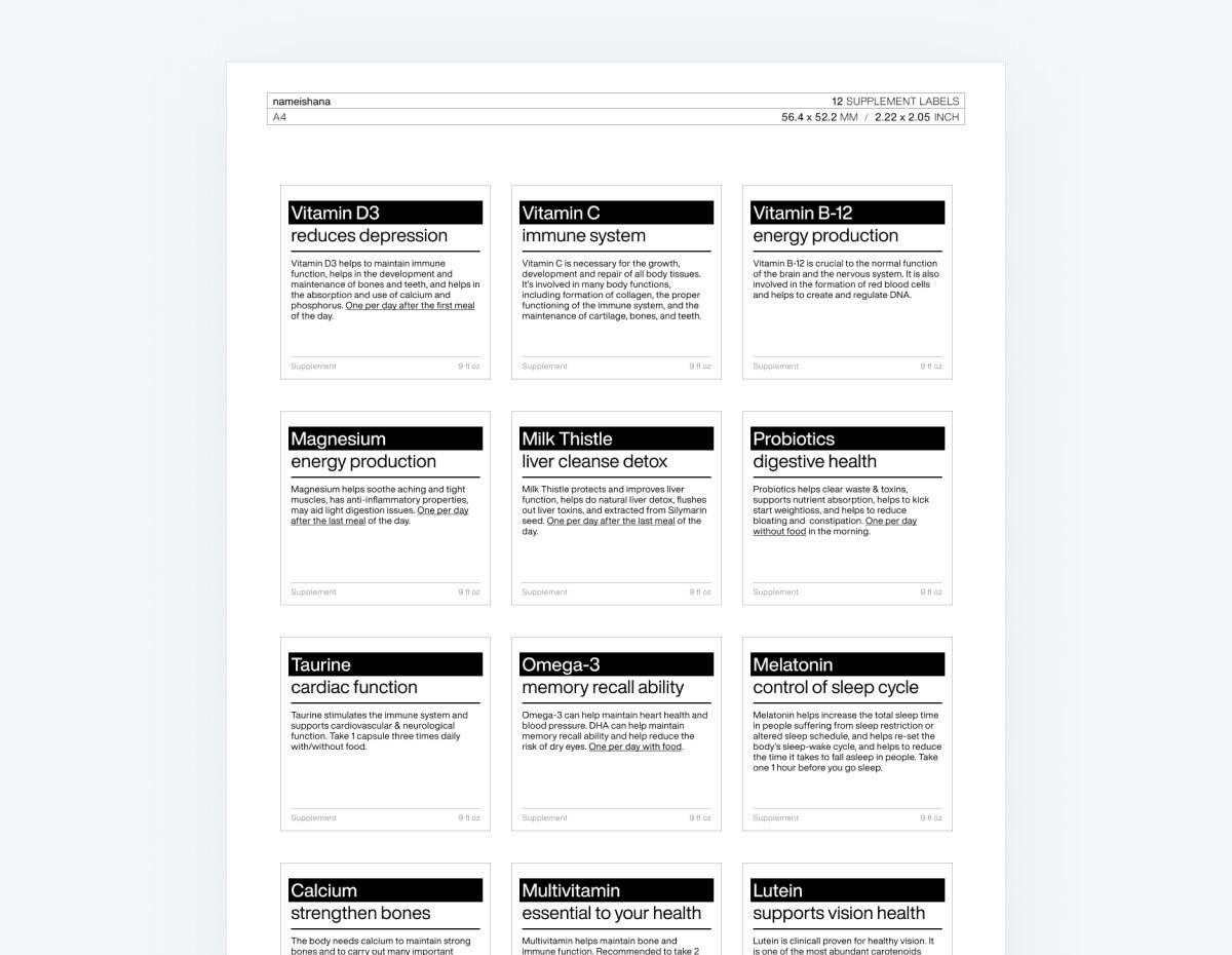 Vitamin Packaging Ideas - 318+ Best Vitamin Packaging ... -... How to create your vitamin packaging design If you want an amazing vitamin packaging that stands out from the competition, work with a professional designer. Find and hire a designer to make your vision come to life, or host a design contest and get ideas from designers around the world. Vitamin Label Graphics, Designs & Templates - GraphicRiver Get 305 vitamin label graphics, designs & templates on GraphicRiver such as Vitamin Label Template, Vitamin Label Template, Vitamin Label Template. Vitamin Packaging Design & Label Design Service | Makers... Vitamin Packaging Design & Label Design Service | Makers Nutrition® +1-844-625-3771 Manufacture Private Label Design Fulfillment About News Label and Package Design Services Package Design Makers Nutrition excels at preparing pristine package and label designs for nutritional supplements. The Whole Package Vitamin Label – Private Label & Contract Manufacturing Services Vitamin Label offers high quality premium private label & contract manufacturing Services Step 1 Ordering With any or all of your label specifications in mind, you’ll be ready to quote and order labels fast with our streamlined ordering tool. Step 2 Proofing