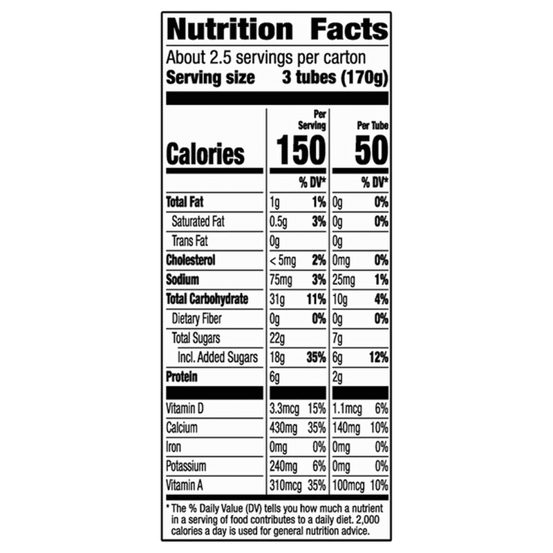 Yoplait Go-Gurt Simply Mixed Berry & Strawberry Banana Yogurt 17 minutes Cycling 22 minutes Walking 40 minutes Based on a 35 year old female who is 5'7" tall and weighs 144 lbs. Calorie Breakdown Where do the calories in Yoplait Go-Gurt Simply Mixed Berry & Strawberry Banana Yogurt come from? 13.0% 66.7% 20.3% Total Fat Total Carbohydrate Protein 145 cal › nutrition › dairy-cheese-and-eggsGo-gurt Nutrition Facts & Calories - Inlivo Go-gurt LOG KEY FACTS (learn about health benefits or risks) Has medium calorie density - this means that the amount of calories you are getting from an ounce is moderate (0.07 cal/oz). Rich in vitamins and minerals (20%/cal) - a good source of Vitamin D, Calcium, Vitamin A, Selenium and Phosphorus. Berry GO-GURT® Yogurt | 8 Tubes | Yoplait US Contains 1% or less of: Kosher Gelatin, Tricalcium Phosphate, Vegetable and Fruit Juice (for color), Potassium Sorbate Added to Maintain Freshness, Natural Flavor, Vitamin A Acetate, Vitamin D3. CONTAINS MILK INGREDIENTS. Nutrition Facts Serving Size: 3 tubes (170g) Amount per serving Calories 150 As Packaged You May Also Like... Create - USDA Routine Uses: The Food Buying Guide (FBG) is an essential tool used by Child Nutrition Program operators and food manufacturers to assist in: 1) purchasing the right amount of food and purchasing it most economically, and 2) determining the specific contribution each food makes toward the meal pattern requirements to ensure that meals provide...